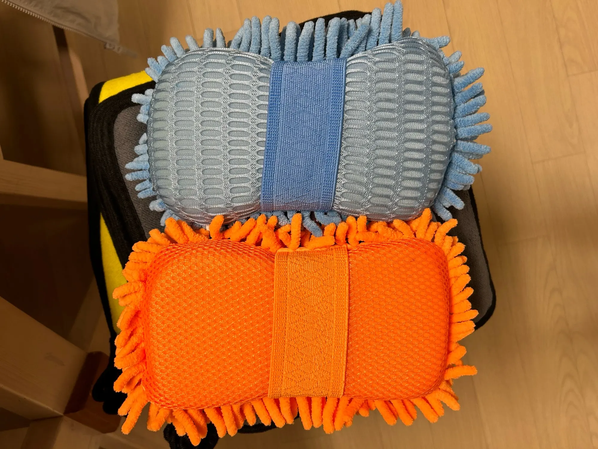 Blue is a product from Korea. The orange sponge is here. It has less mop hair than the one you have in Korea, but it’s half price compared to the price excellent for two, appropriate for assistant personnel to use when washing cars. Delivery to Korea is fast and cost-effective judged to be one product