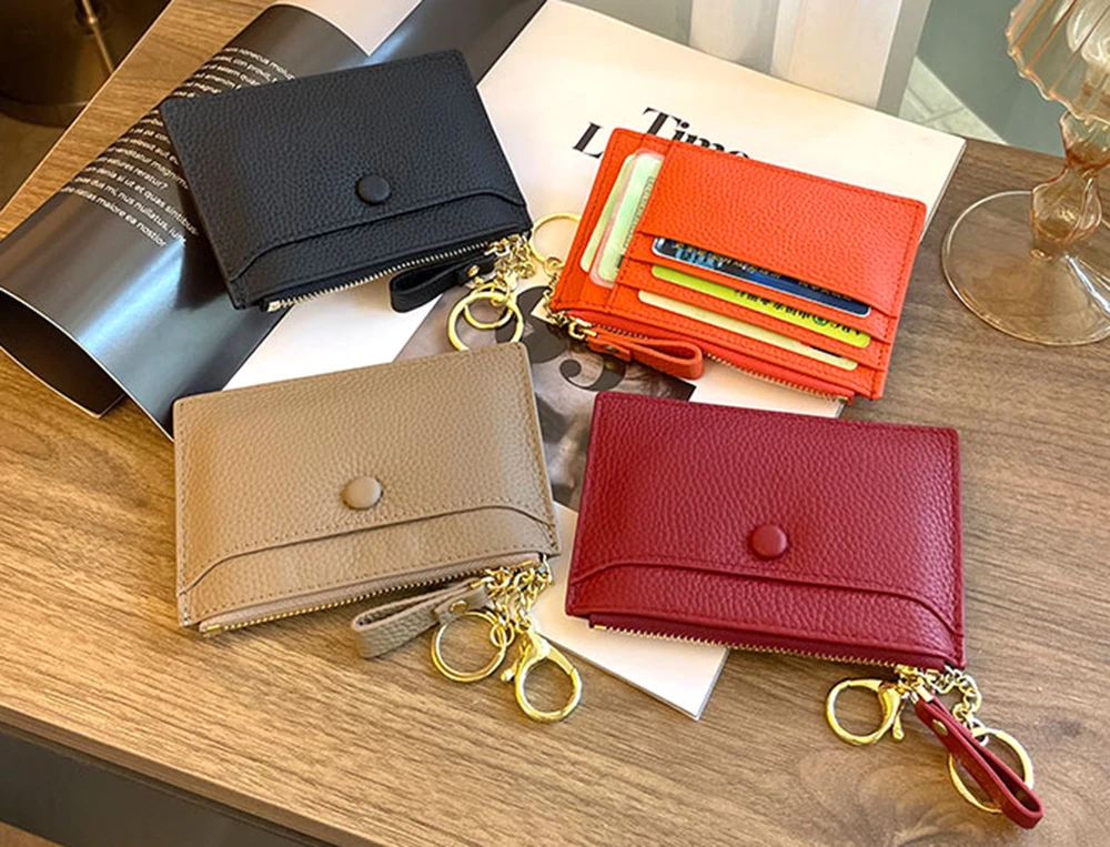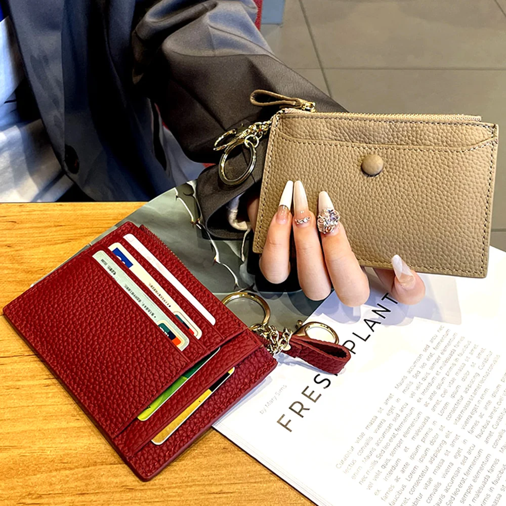 Custom Initials Women Zip Wallet Personalize Name Gift Genuine Leather Short Keychain Purse Lady Credit Card Holder Money Bag