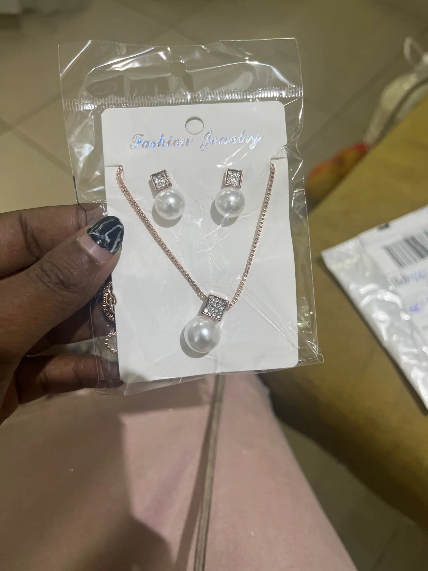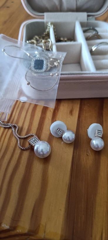 Nice set but workmanship medium. On the earrings you can see the remnants of the glue. Excess glue visible in the photo.