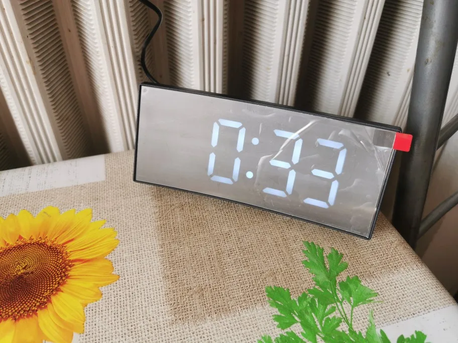 LED Alarm Clock with Curved Mirror Screen – Stylish and Functional