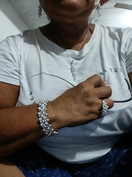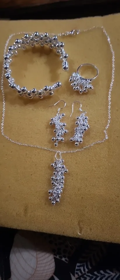 The set of necklace earrings rings and bracelet is very beautiful… I recommend it ..