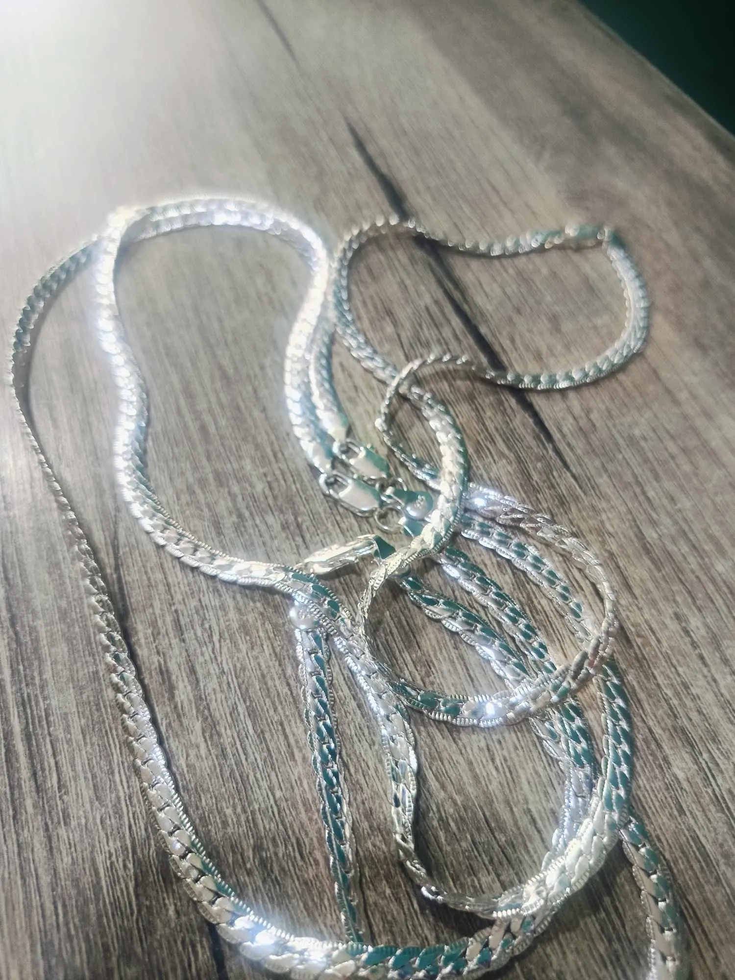 This is a very beautiful chain necklace and bracelet set. It is very well crafted and out of 925 silver. It will make the ladies in your life happy.