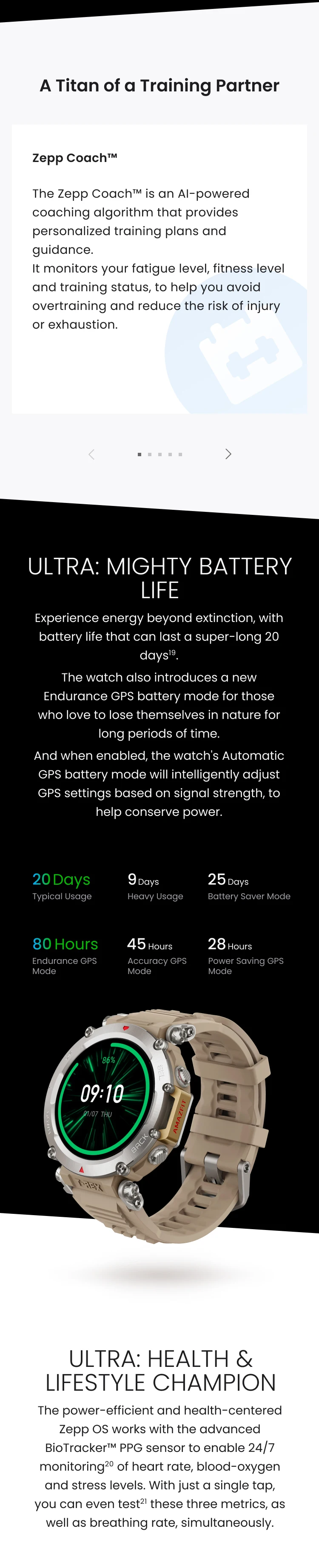 The Amazfit T-Rex Ultra is a 47mm rugged smartwatch built to withstand the toughest conditions.