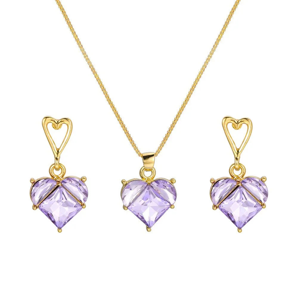 Elegant Heart-Shaped Zircon Pink Crystal Jewelry Set – Perfect for Exquisite Gifts