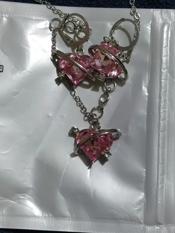 Oh my God like pink is my favorite color and y’all came through with this jewelry set is so cute. It looks good on me. I really appreciate this jewelry set like oh my God is giving rockstar pink world.