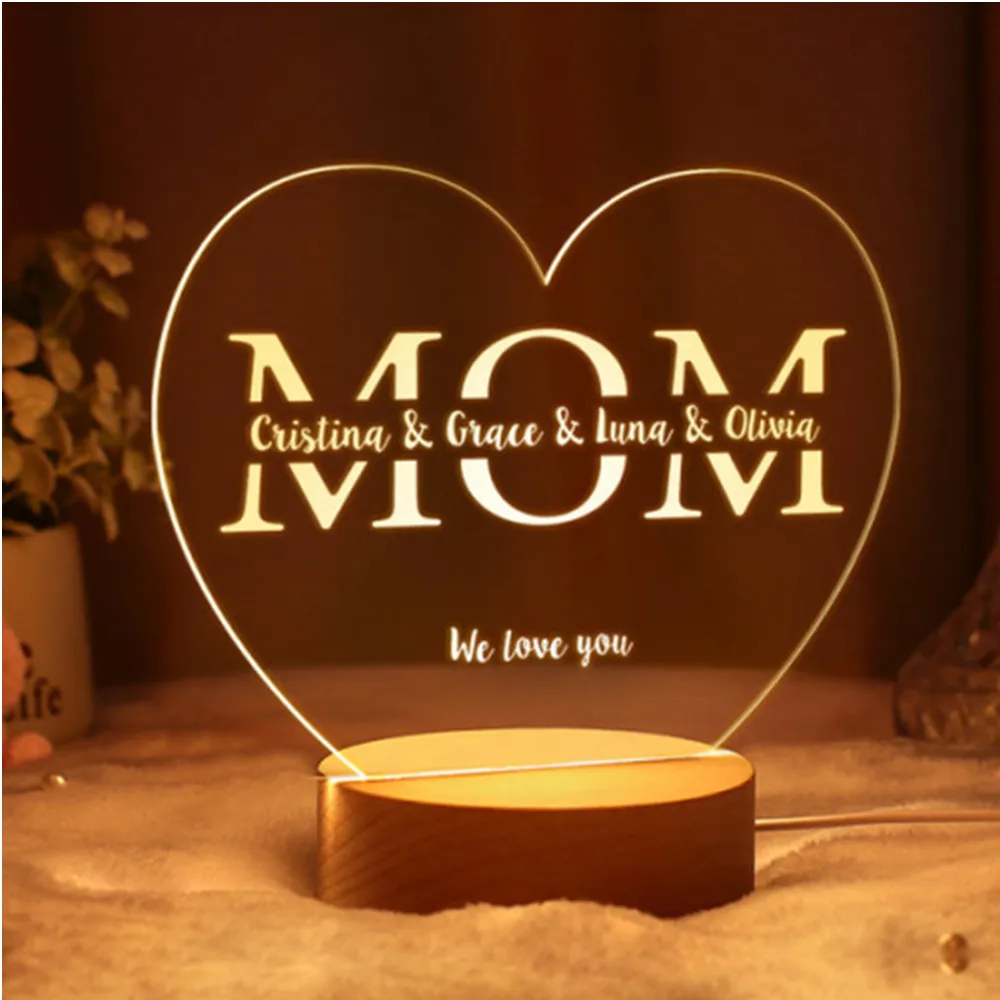 Celebrate your family with the Personalized Family Tree Night Light. Firstly, this Personalized Gift for Mom has a unique lamp that features a heart design that can display up to 12 names, making it an ideal gift for Mother’s Day or Christmas. Moreover, it includes an LED light and a USB-powered wooden base, combining style and functionality. Additionally, these Unique Home Decor warm glow creates a cozy atmosphere, highlighting the sentimental value of each name. Furthermore, its elegant design complements any home decor. Ultimately, this night light is a cherished keepsake that any mom will love.