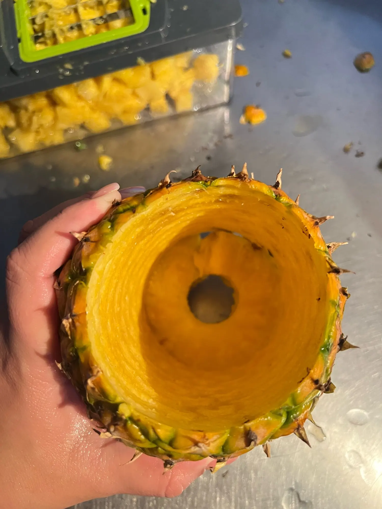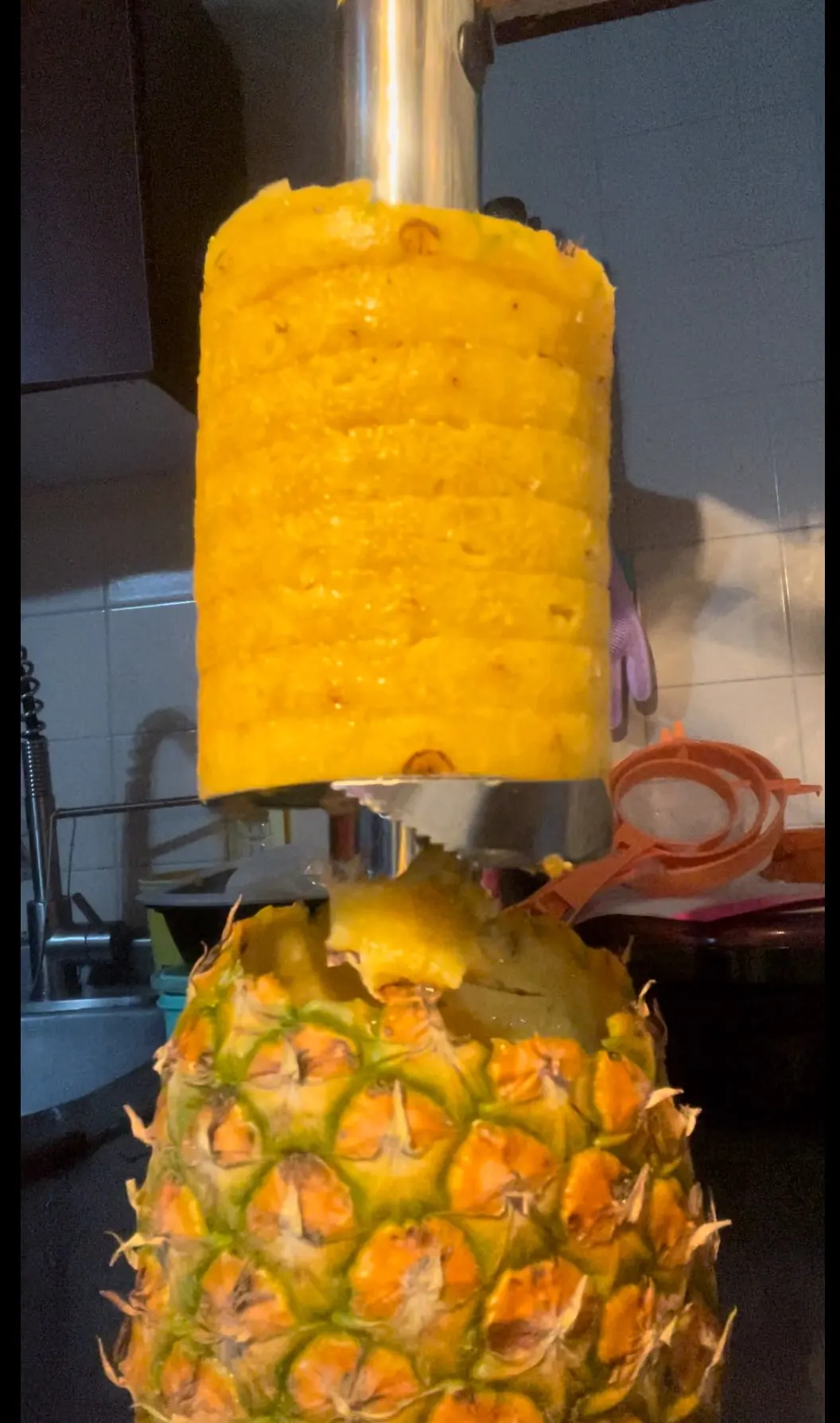 The truth is super great when I arrived we saw it half a chafon but we use it and it is wonderful and it saves you a good time, what if you have to look for pineapples of more or less the size so that not be wasted