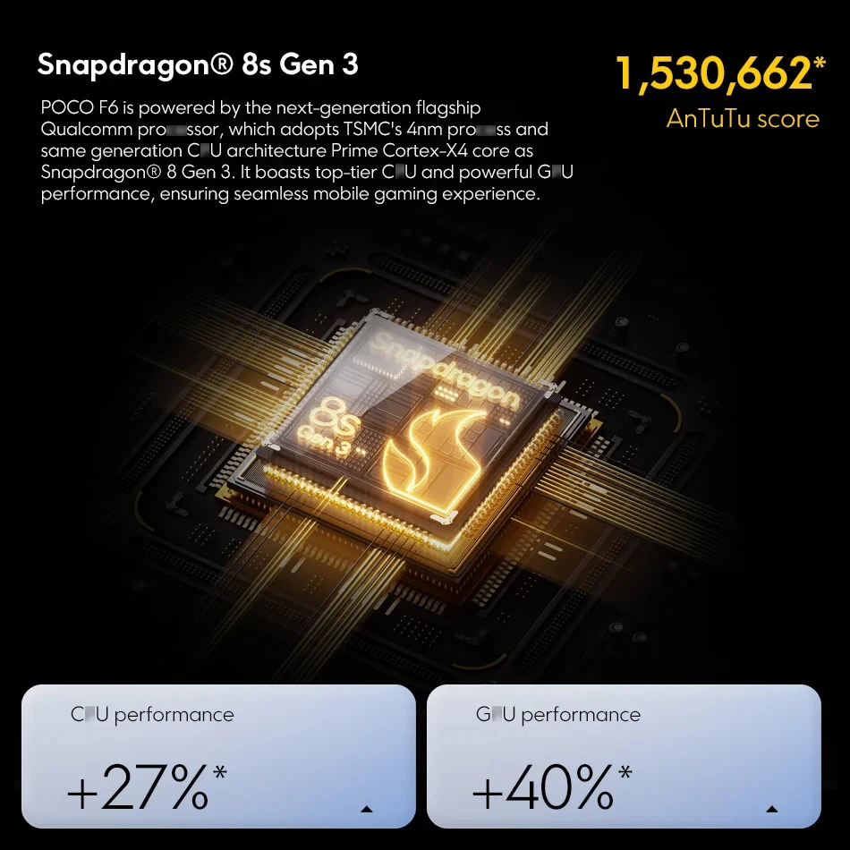 - Snapdragon 8s Gen 3: Experience fast, efficient performance.