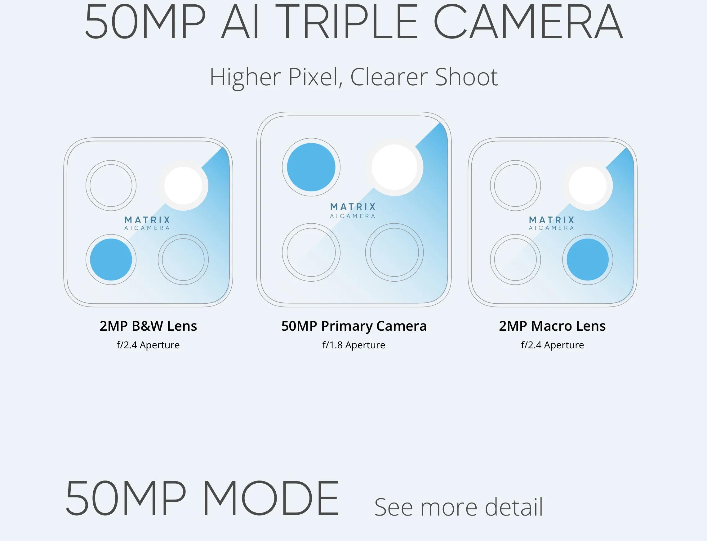- 50MP AI Triple Camera: Capture sharp, clear photos.