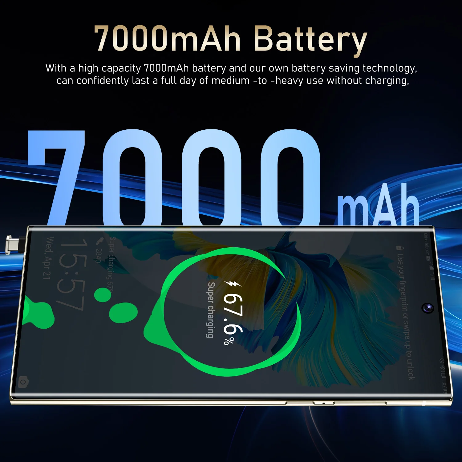- 7000mAh Battery: Long-lasting power for extended use.
