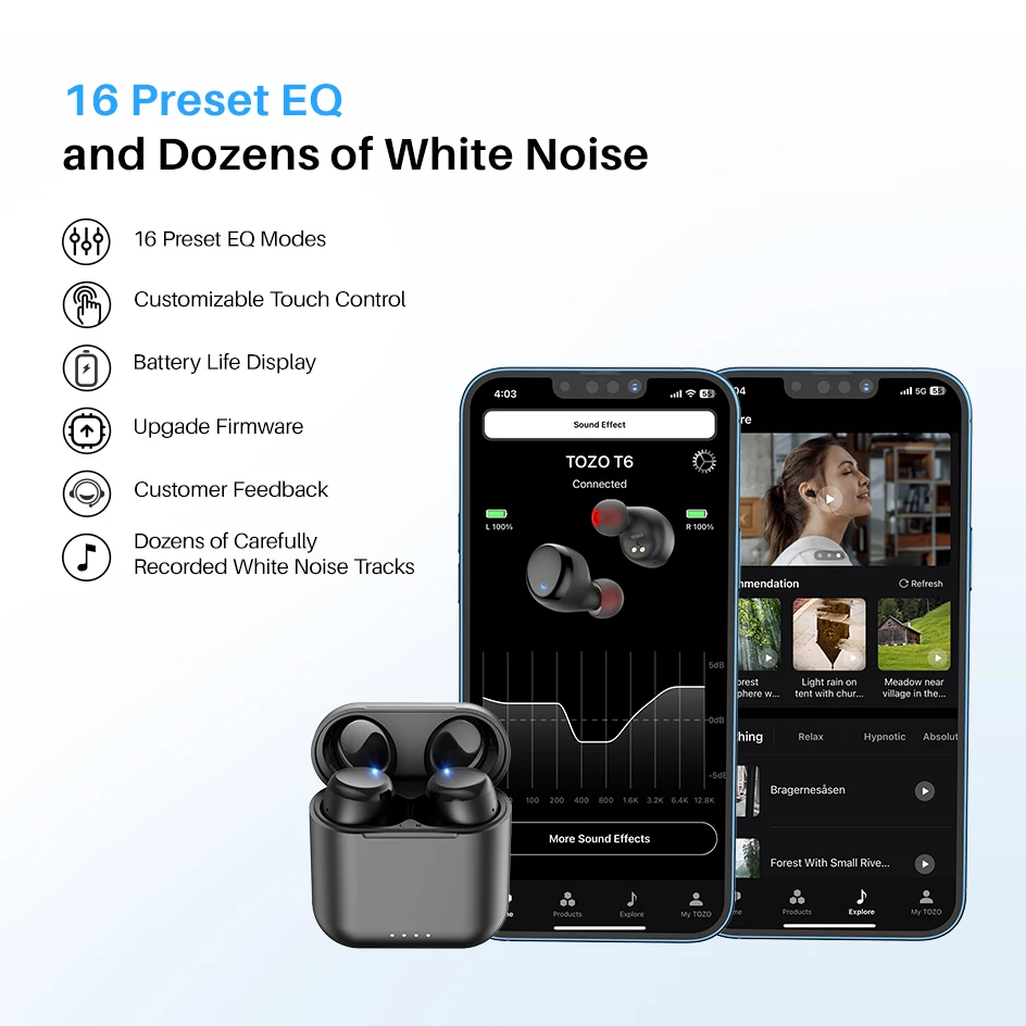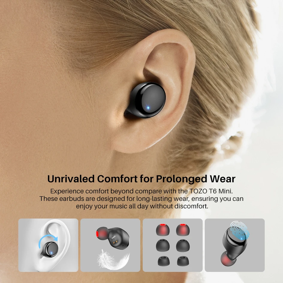 - The TOZO T6 offers a sound experience like no other, meticulously fine-tuned to deliver audio that resonates with precision and clarity.