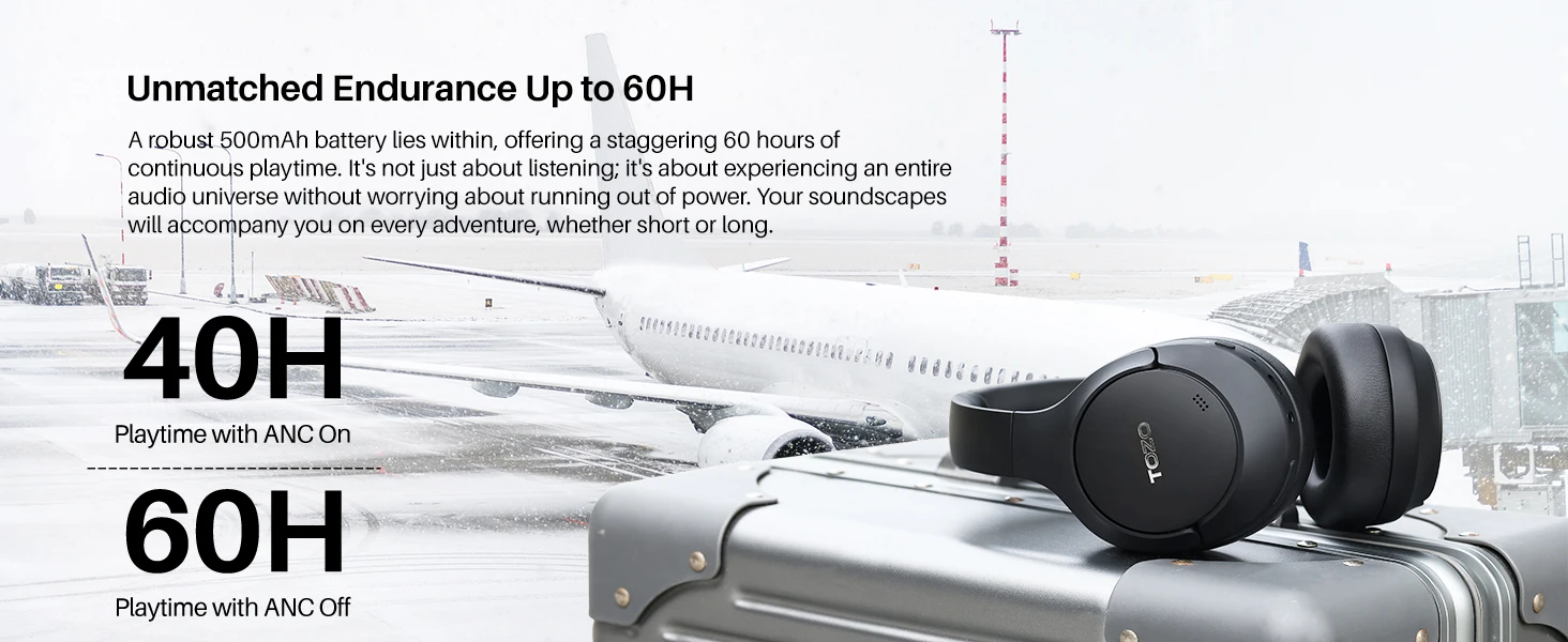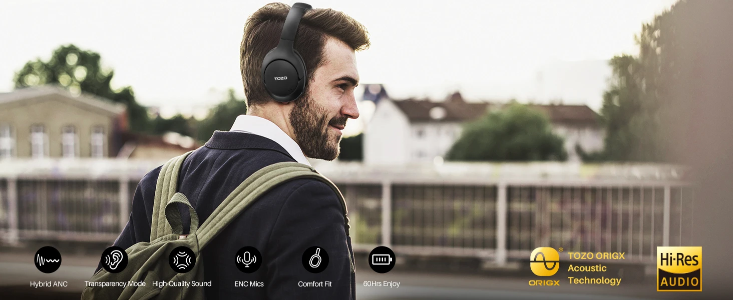 Immerse yourself in superior sound with the TOZO HT2 Hybrid Active Noise Cancelling Wireless Bluetooth Headphones. Firstly, these headphones offer multiple listening modes to suit any environment. Moreover, the Hi-Res Audio and deep bass ensure a rich, immersive experience. Additionally, the foldable design of these Foldable Wireless Headphones makes them perfect for on-the-go use. Furthermore, enjoy up to 60 hours of playtime for uninterrupted listening. Ultimately, these Premium Audio Headphones provide the perfect combination of advanced noise-canceling technology and exceptional sound quality.