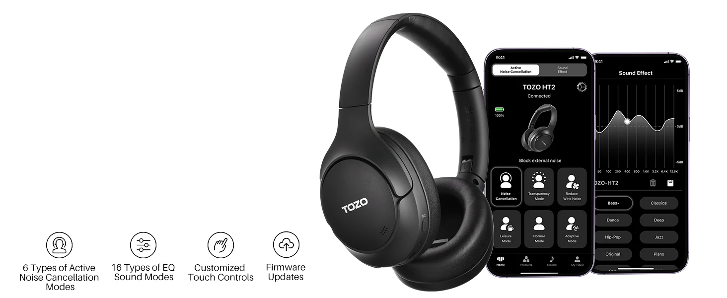 TOZO HT2 Hybrid Active Noise Cancelling Headphones – Foldable Wireless Headphones