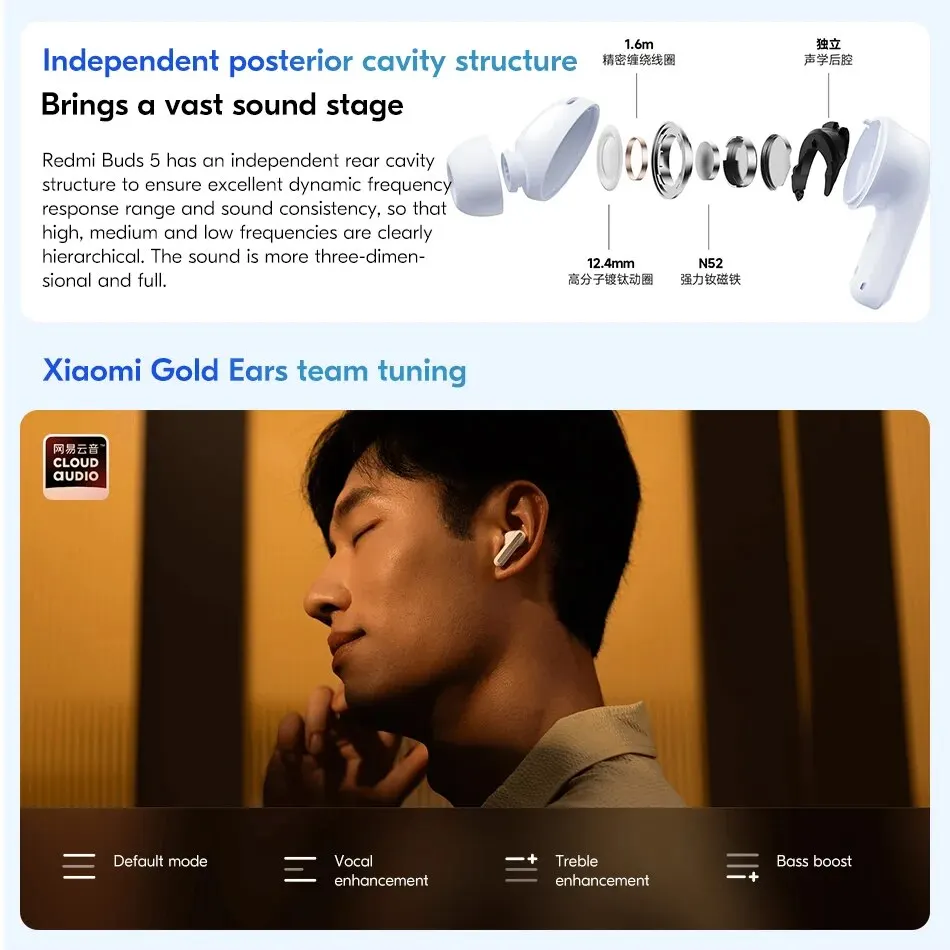 Xiaomi Redmi Buds 5 are designed to deliver powerful sound and advanced noise cancellation in a sleek, wireless design.