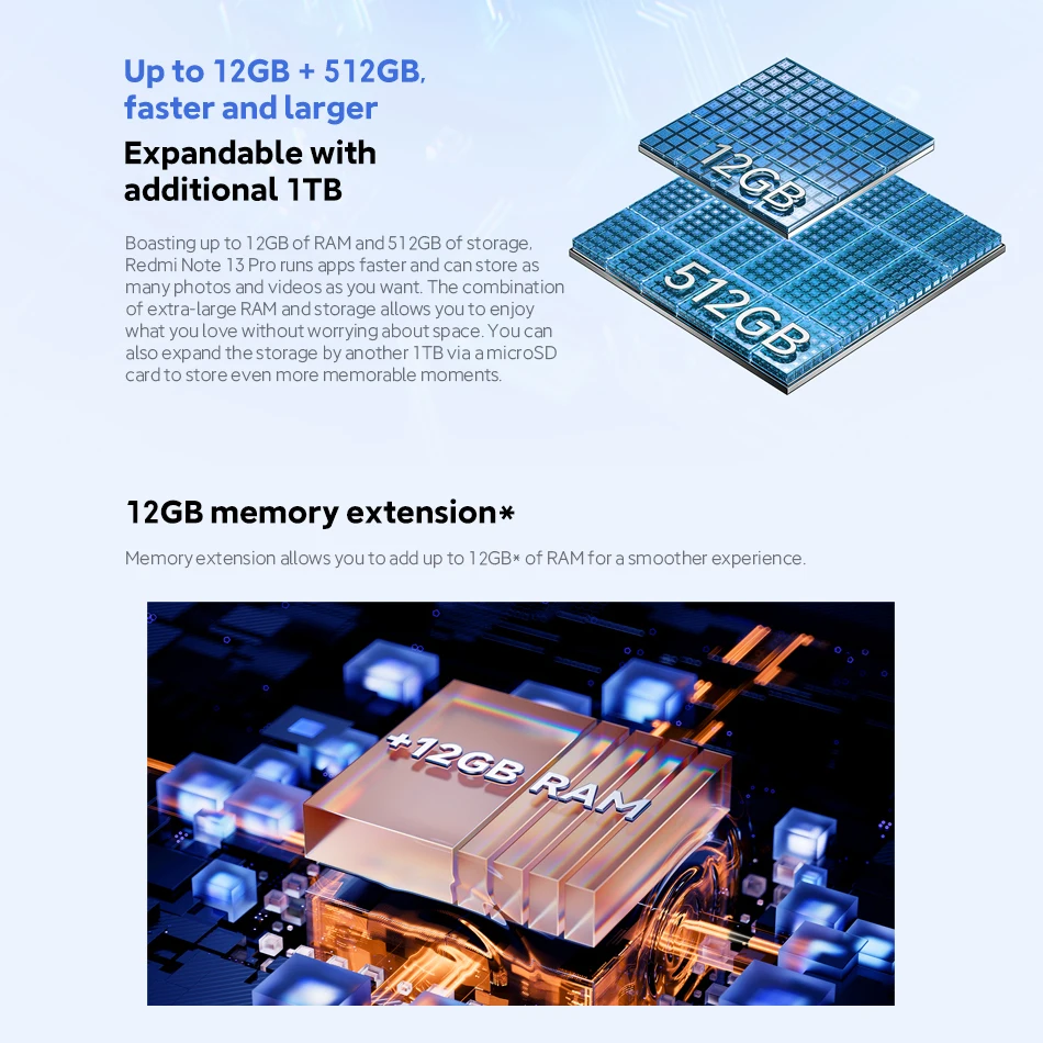 Up to 12GB+ 512GB,faster and larger Expandable with additional 1TB
