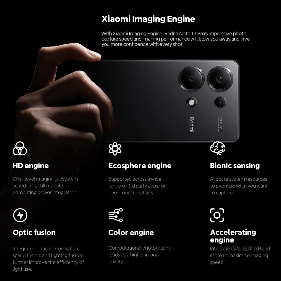 With Xiaomi lmaging Engine.Redmi Note 13 Pro’s impressive photocapture speed and imaging performance will blow you away and give you more confidence with every shot.